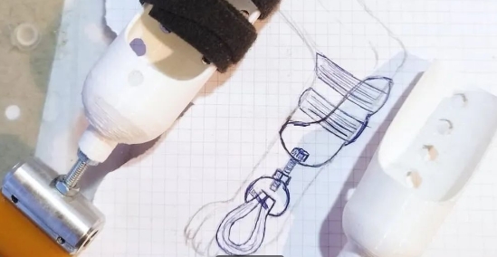 jonVillaRobre的貓或狗假體是腕骨或跗骨假體的一個很好的例子。它是由一個3D打印的底座制成的,用魔術(shù)貼綁帶將其緊固在殘肢上。支架的設(shè)計是為了提供高度控制和減震。它由一個帶螺母的螺絲組成,根據(jù)寵物的身高控制假肢的大小,還有一個3D打印的夾子、固定橡膠,負責假肢的沖擊吸收。